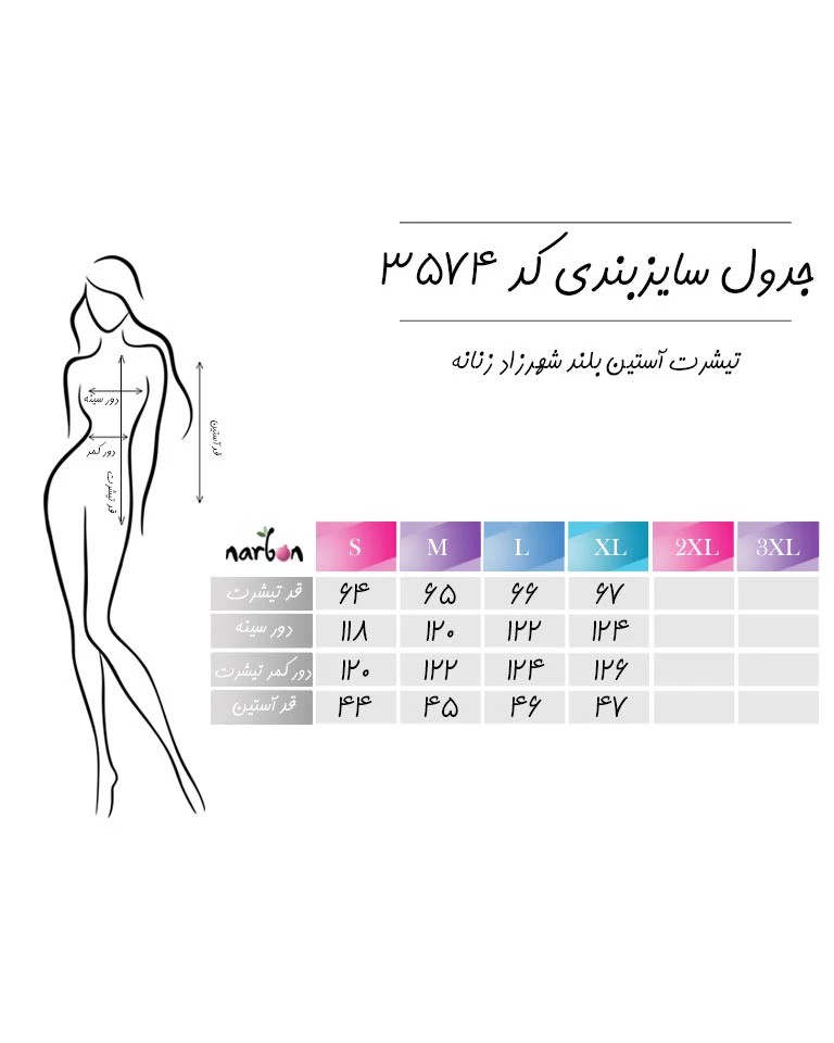 بلوز آستین بلند شهرزاد زنانه، کد 3574، یکی دیگر از لباس های راحتی زنانه ناربن می باشد.این بلوز تک راحتی در رنگ های نوک مدادی، کالباسی روشن، کالباسی تیره، سبز فسفری، طوسی، صورتی، سرخابی طراحی و تولید گردیده است.