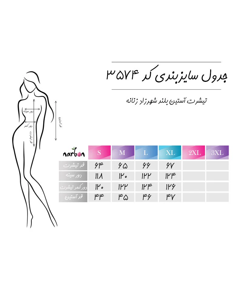 این تیشرت زنانه در 4 سایز S، M، L، XL ارائه می گردد.