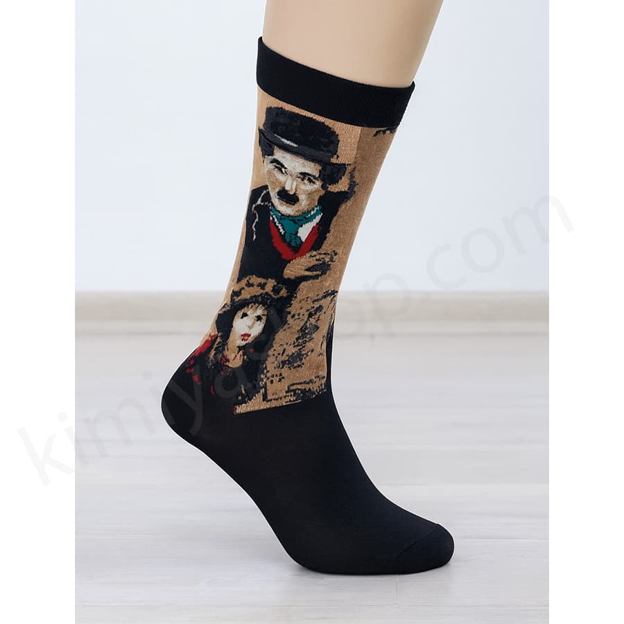 جوراب مردانه ساقدار با طرح چارلی چاپلین و جکی