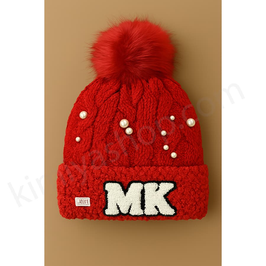 کلاه دخترانه بافتنی مدل توپکدار با طراحی خاص و رنگ قرمز چشمگیر. روی کلاه با مرواریدهای زیبا تزئین شده و لبه آن دارای طرح گلدوزی MK است. این کلاه علاوه بر زیبایی، بهخوبی از سر کودک شما در برابر سرما محافظت میکند.