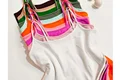 همان گونه که در (تصویر) می بینید یقه ی این تاپ ها خیلی باز یا بلند نیست. این ویژگی به تاپ کمک می کند تا سینه ها و خط وسط سینه ها را به خوبی بپوشاند. یکی از ویژگی های خوب دیگر این تاپ های بنددار اینست که، رنگ آن ها ثابت است. رنگ آن ها با شستشو تغییر رنگ نمی دهد و تُل نمی اندازد.